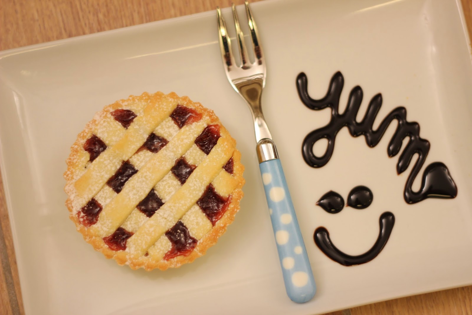 Pozionare nello stampo per crostata, farcire con la marmellata (noi abbiamo usato una confettura alla fragola fatta da noi!) o nutella, a piacere.